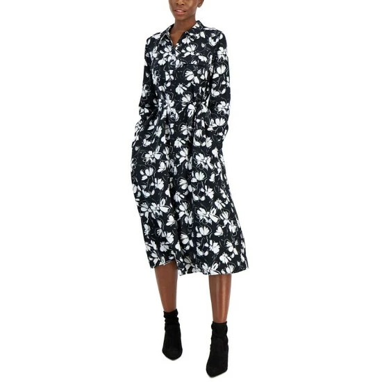 Delicate florals lend a ethereal look to this petite dress from Alfani, featured with a self tie belt at the waist for figure flattering definition.