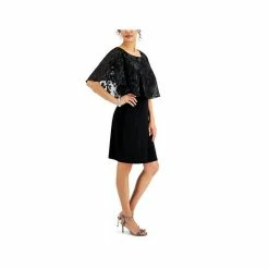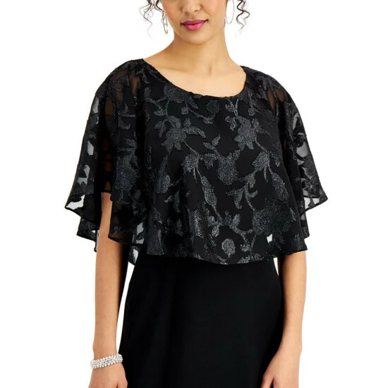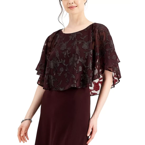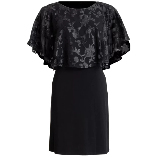 Something to toast to. Connected combines a stretch skirt with a shimmering floral cape overlay for style worth celebrating.