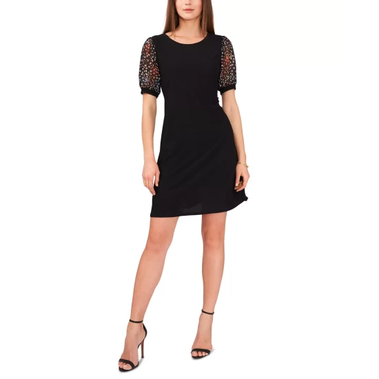 A tailored fit brings a chic feel to your party look with Connected’s petite lace sheath dress, which comes finished with a beautiful sheer cape-style overlay.