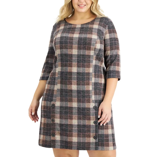 A total look: Connected’s petite printed A-line dress features a faux jacket for added style.