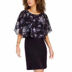 Breeze to your next event in this petite floral print popover dress from Connected, pair it with heels for a chic finish.