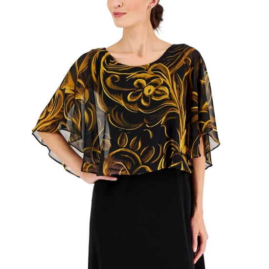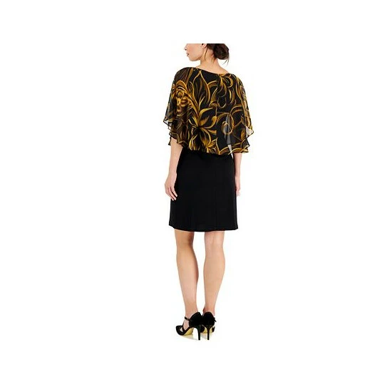 A flowy printed overlay adds a touch of festive flair to wear at your next party in this sleek petite jersey dress from Connected.