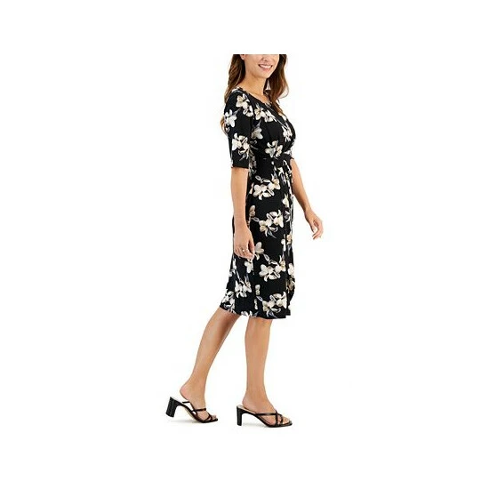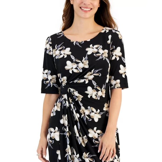 Update your closet with this petite printed design from Connected, featured with a modern drape that skims the body for a figure flattering finish.