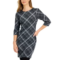 A perfect-fitting sheath dress with just the right amount of stretch, this Connected style is pure sophistication in a subtle plaid print.