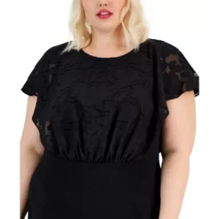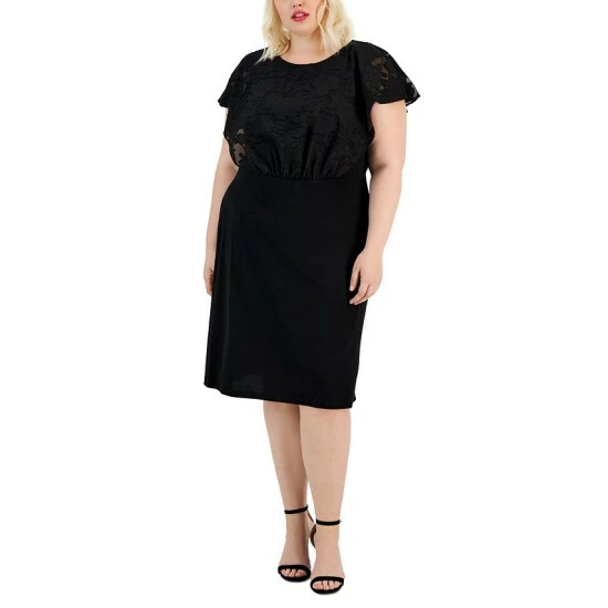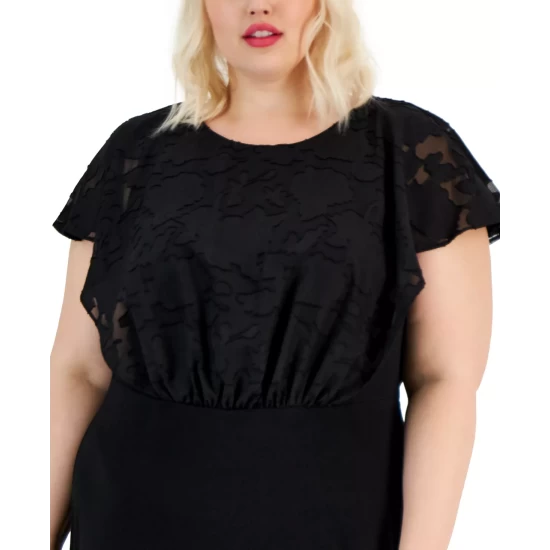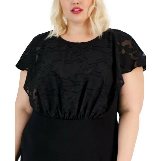 A tone-on-tone burnout overlay tops a sleek jersey-knit silhouette to make a sophisticated statement at a party in this Connected plus size midi dress.
