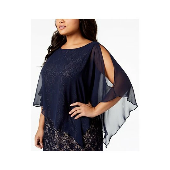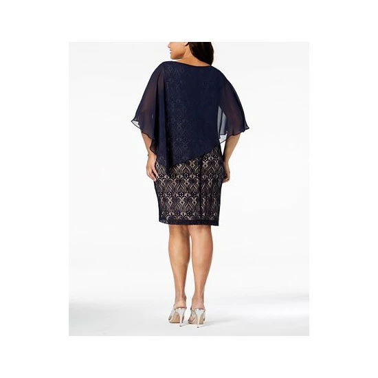 Get a show-stopping party look: Connected’s plus size lace sheath dress is finished with a gorgeous sheer cape-style overlay.