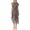 The uncomplicated shape of Connected’s plus size dress is enhanced with glam embellishments on swingy chiffon to bring elegant ease to the party.