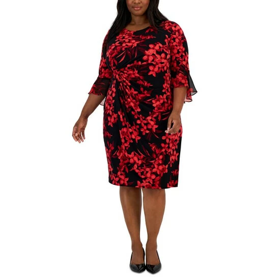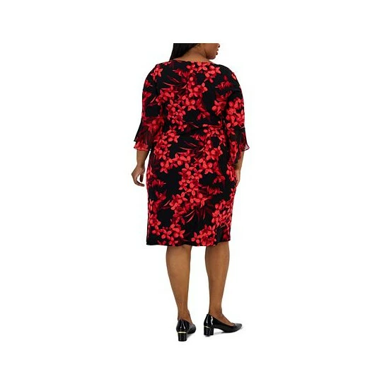 Ruffled sleeves bring the drama to this plus size dress from connected, a chic party-ready piece that’s a must-have for any closet.