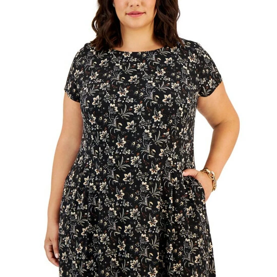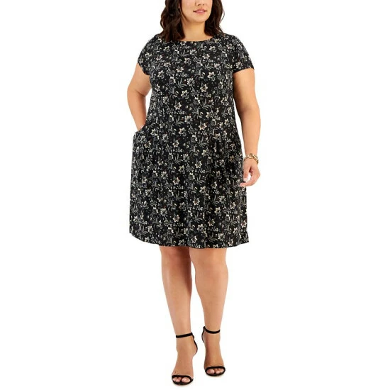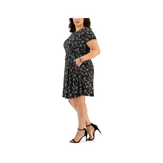 A fit and flare silhouette lends a figure flattering look to this plus size dress from Connected, finished with pockets at the hips for all your tiny essentials.
