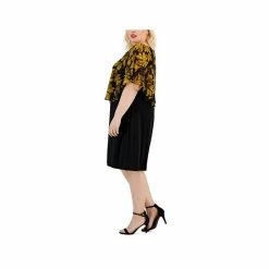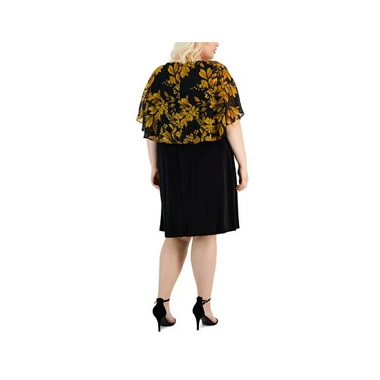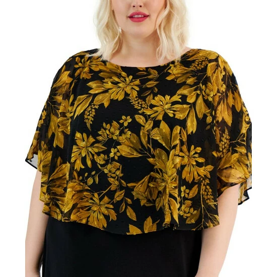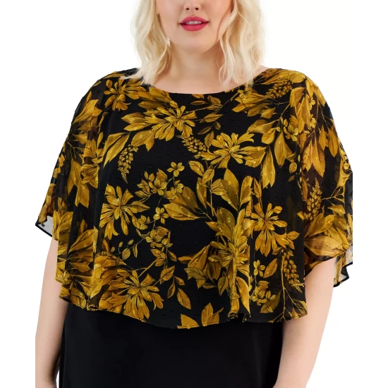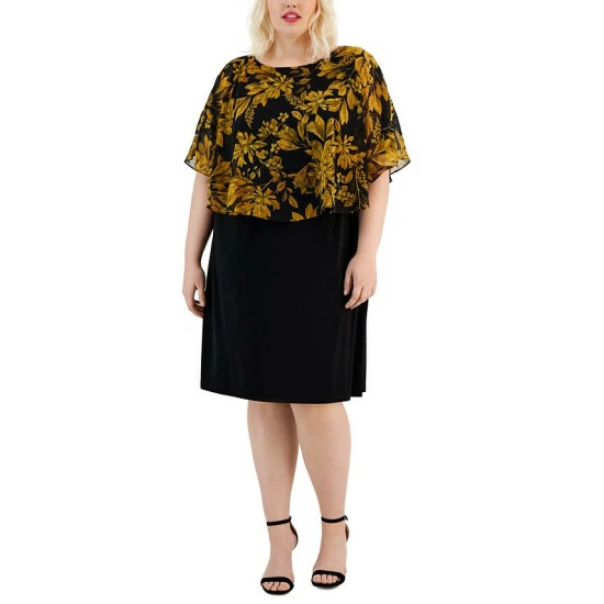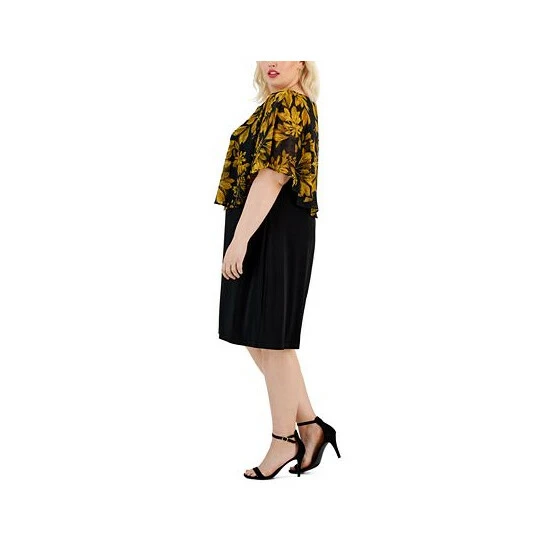 A flowy printed overlay adds a touch of festive flair to wear at your next party in this sleek plus size jersey dress from Connected.