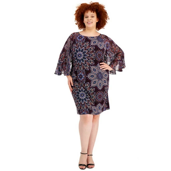 Never look anything but your best in this plus size dress from Connected, framed by chiffon ruffle sleeves for a charming finish.