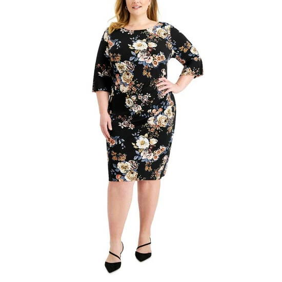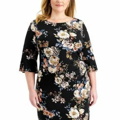 A fresh floral print adds a hint of romance to this soft jersey sheath dress by Connected.