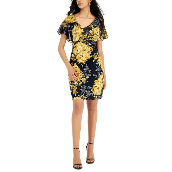 Accented with a cape overlay, this V-neck dress from Connected will add a touch of elegance to your next event.