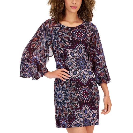 Neat pleats surround a side front tab to bring sarong-inspired style to this floral jersey-knit sheath from Connected.
