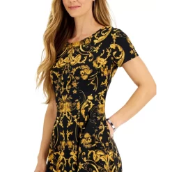 - Round neckline; Sheath silhouette