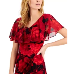 A floral-adorned cape overlay brings this sheath dress by Connected to life, the floral layer that is also finished in a Swiss-dot texture, flawlessly drapes over the tailored bodice, creating a look that will be sure to turn heads at your neck cocktail party.