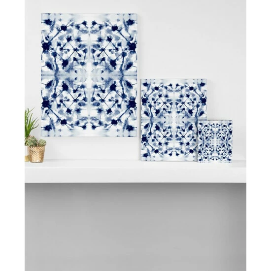 Brisk-tones contrasting on a crisp white ground and an eye-catching motif make the Cosmic Connections Blue Art Canvas by artist Jacqueline Maldonado from Deny Designs perfect for bringing to your space a whimsical styling accent.