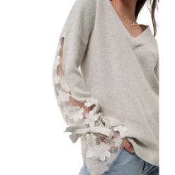 Delicate lace detailing combines with soft cotton to create this feminine long sleeve top from French Connection.