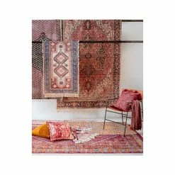 - Bright, bold prints are given a distressed vintage look with a specially colorwashed kilim technique