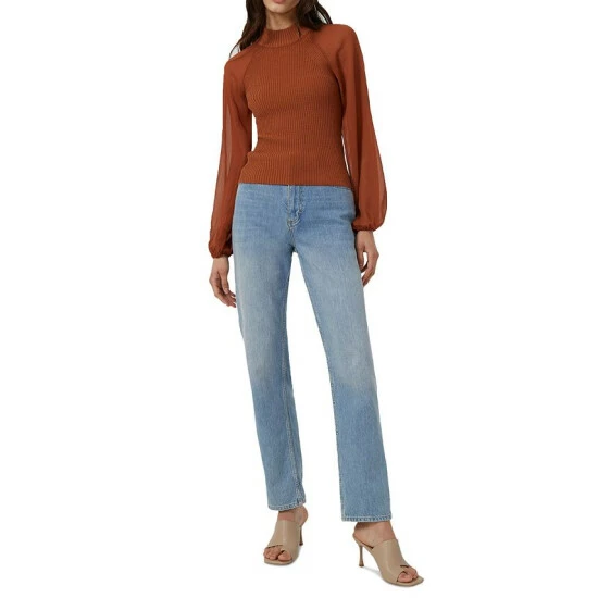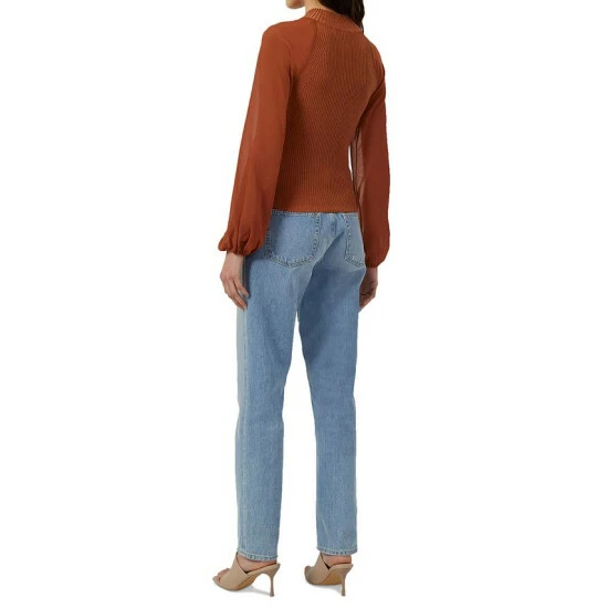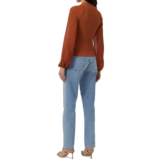French Connection goes mod in this fitted top, with a ribbed bodice and sheer sleeves.