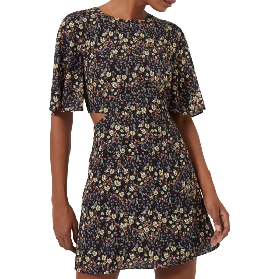 A field of flowers blooms across French Connection’s chic mini dress, a flattering A-line silhouette framed by fun flutter sleeves and cool cutouts at the side waist.