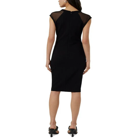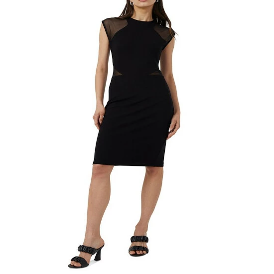 Keep it sleek and chic in French Connection’s form-fitting dress. Touches of illusion trim add to the contemporary vibe.
