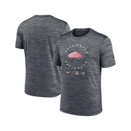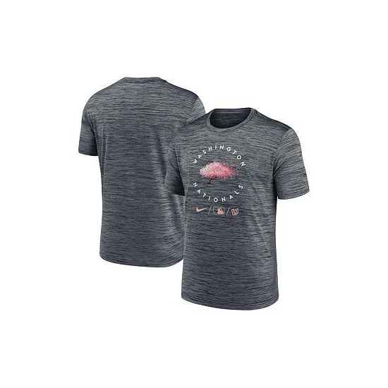 Add a truly unique piece to your Washington Nationals collection with this 2022 City Connect Authentic Collection Velocity Practice Performance T-shirt. This special Nike gear is inspired by the Japanese cherry trees that surround the city. These trees were established in 1912 as a gift of friendship from the mayor of Tokyo. The graphics highlight the DC flag, showcasing one of the most powerful cities in the world, a global hub for business and politics.